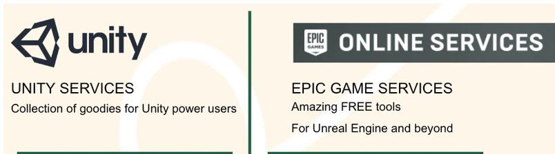 - Epic Online Services : A robust set of free tools from Epic Games, available for both Epic’s own Unreal Engine but also Unity, offering features like authentication, friend lists, and more. Epic Online Services is fully free and offers an incredible amount of flexibility and base functionality. It will, however, closely tie your company to Epic – for good or ill.